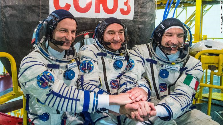 图3:2019年7月,NASA宇航员安德鲁·摩根、俄罗斯航天局宇航员亚历山大·斯克沃尔佐夫和欧洲航天局宇航员卢卡·帕尔米塔诺搭乘俄罗斯联盟号飞船前往空间站。