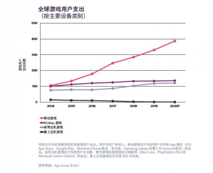 5月30日消息,日前,App Annie与IDC联合发布的《聚焦游戏领域 2020 年回顾报告》(Gaming Spotlight 2020 Review Report)显示,2019年,全球游戏类别的总应用下载量占比不到40%,却创造了接近 70% 的 iOS 和 Google Play 综合应用支出;移动游戏的规模和发展速度都将继续超越PC/Mac游戏或家用主机游戏。受益于用户数量和平均用户支出的增加,移动游戏将进一步扩大全球领先优势,其用户支出可达到 PC/Mac 游戏的 2.8 倍以及家用主机游戏的 3.1 倍。