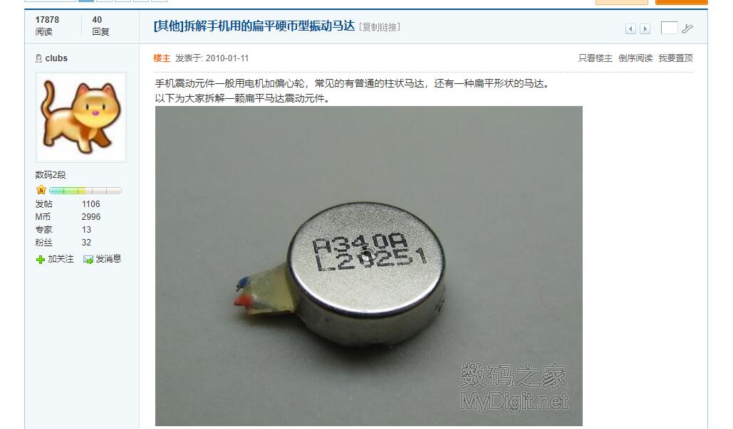 随着iPhone5&5s再次回到柱状转子马达后,便是我们都很熟悉的Taptic Engine了,虽然它并不是第一个X轴线性马达,但由于它确实是大众认知的标杆,我们便以它为准。至于剩下的扁平转子马达,我暂未找到第一个使用它的机型,不过倒是发现了一篇2010年的拆解帖,由此可知扁平转子马达的技术也是相当久远了。