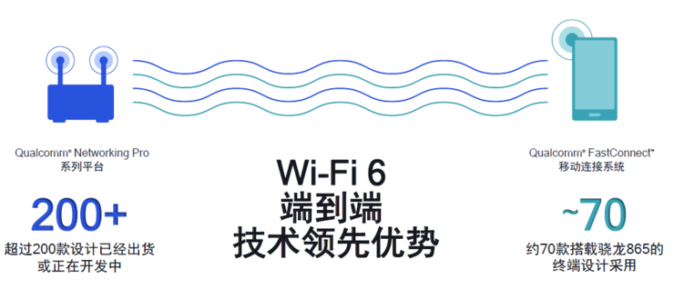 目前,已经有超过200款基Networking Pro系列平台的无线路由器已经出货或正在开发中;在手机终端侧,已有约70款搭载骁龙865移动平台的终端采用了FastConnect移动连接系统。新一代的Networking Pro系列平台现已出货,FastConnect 6900和6700解决方案正在出样,预计将于今年商用。