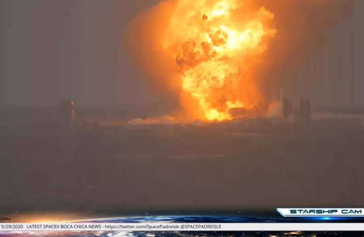 在SpaceX点燃测试火箭上的引擎后不久,一个巨大的火球将飞船原型机吞没在火焰中,几乎没有留下任何硬件,还损坏了测试地点。