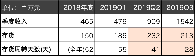 此外,分析人士称,作为一家零售企业,存货对于瑞幸咖啡来说是非常重要的指标。2019二季度,公司收入环比增长90%,存货却仅上涨了23%;更匪夷所思的是,2019三季度,公司收入环比增长了70%,存货总量反而下降了!公司存货周转天数也从2019年一季度的55天下跌到了三季度的28天。