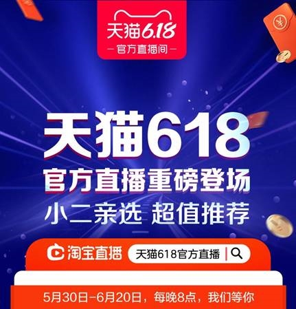 从5月30日到6月20日,每晚8点“天猫618官方直播间”就将率先开播,在淘宝直播里搜索“天猫618官方直播间”即可观看。