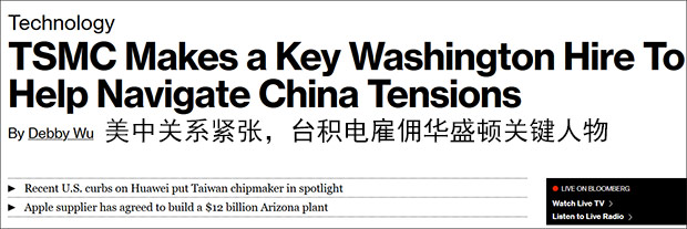彭博社称,台积电此举旨在缓和中美关系恶化对其经营的影响。