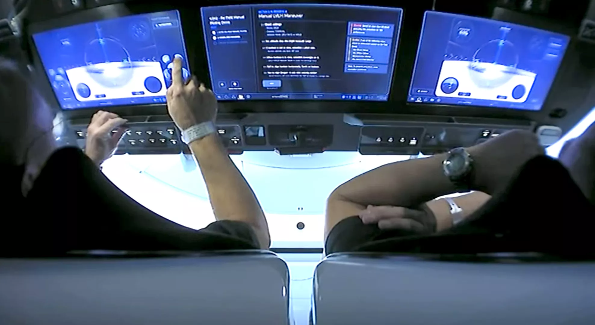 在美国宇航局宇航员鲍勃-贝恩肯和道格-赫尔利成为首位乘坐私人拥有的火箭发射到太空的宇航员近两小时后,他们也成为首位仅使用触摸屏控制飞船飞行的驾驶员。SpaceX公司的Crew Dragon飞船在设计上早已取得了一项突破,那就是摒弃了在航天飞机或阿波罗号指挥舱等退役的航天器上著名的迷宫式的手动控制和开关。