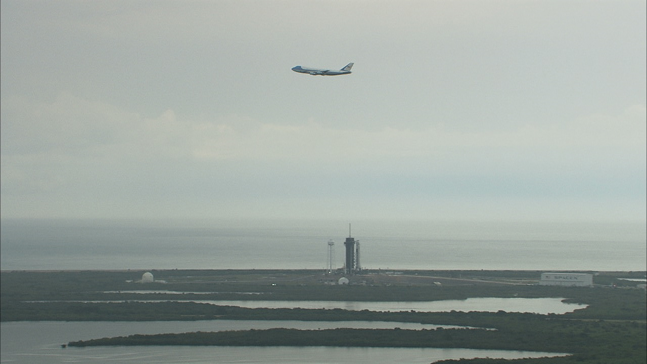 发射前夕空军一号抵达肯尼迪航天中心,之前因为天气原因,本次载人航天发射推迟了两天,特朗普今天是第二次前来观看发射。