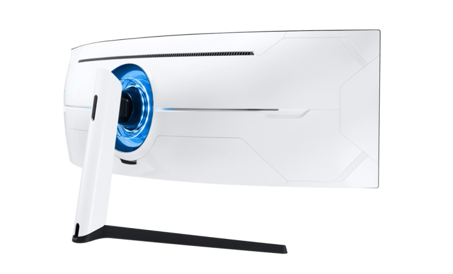外观方面,考虑到49英寸的超宽尺寸,G9采用了相当激进的1000R曲率设计,带来了更加出色的沉浸感,背部支架处有球形RGB环绕,相当酷炫。
