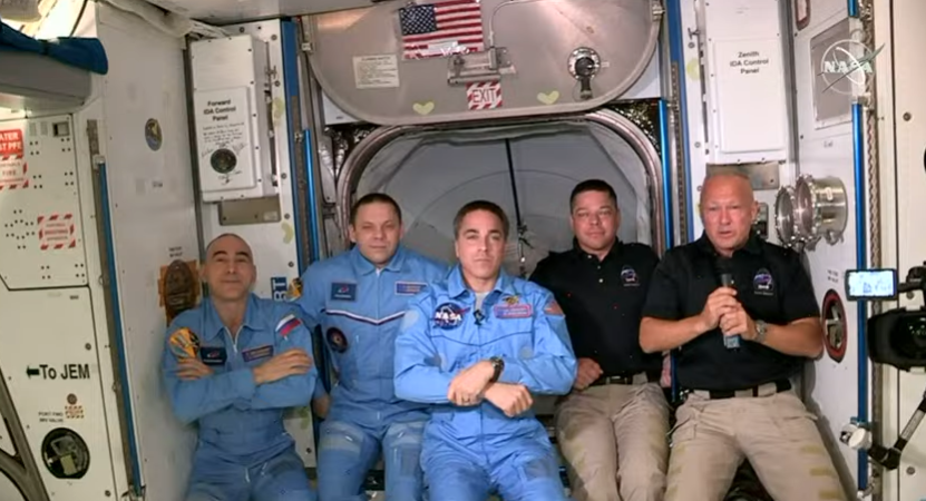 "远征63号机组人员很荣幸地欢迎载人龙号和商业乘员计划成员登上国际空间站。"美国宇航局宇航员克里斯·卡西迪在空间站内说。