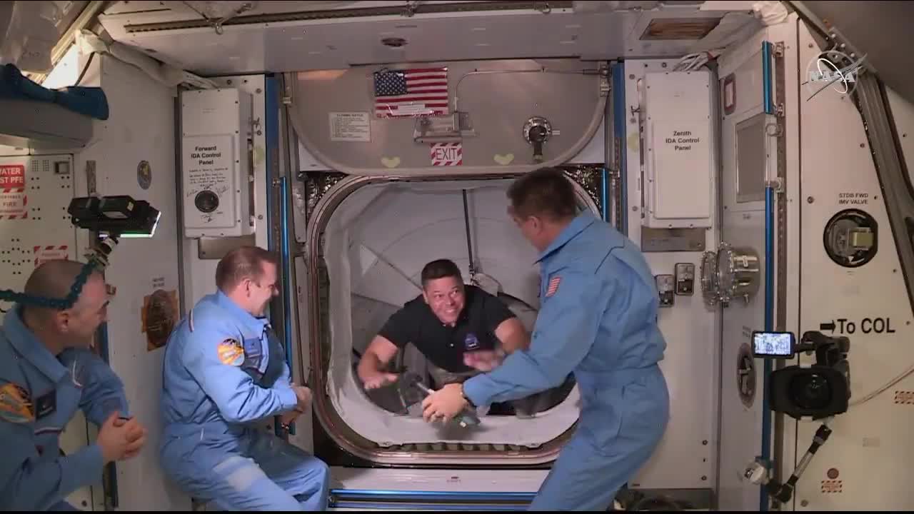 对接发生在美国东部时间周日上午10点29分左右,本肯和赫尔利离开飞船之前等待了一段时间。两位宇航员在美国东部时间下午12点45分左右打开舱门。大约30分钟后,驻留在空间站上的宇航员为他们举行了小型欢迎仪式。
