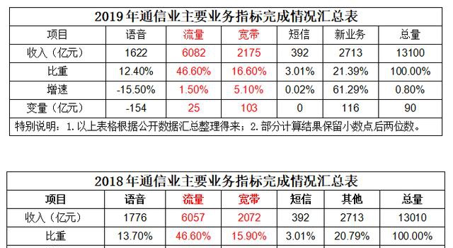 流量消耗增长受限,必然导致流量收入的增长乏力。2018年和 2019年的数据都证实这个结论。也正是受限于流量收入的增长有限,运营商电信业务收入增长幅度被整体拉低了。下图所示,2019年流量收入增量仅有25亿元,远低于2018年的560亿元。