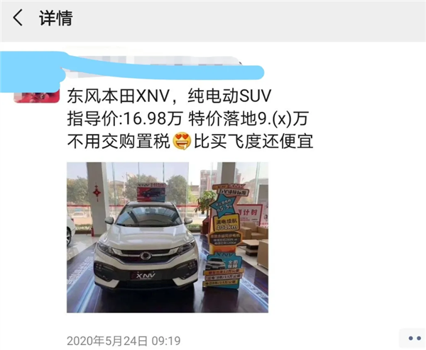 但是,本田这两款纯电动车型,本身在产品力上与市场同级车型就有着一定的差距,又没有悬挂本田车标,市场表现情况不够亮眼也在情理之中。据网上经销商给出的信息显示,当前东风本田X-NV车型,指导价优惠8万左右,直接5.5折销售。