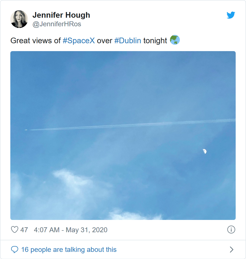 其他人则用他们自己拍到的一些漂亮照片补充了这一太空事件的视觉效果。下面这张是在都柏林拍摄的一张照片: