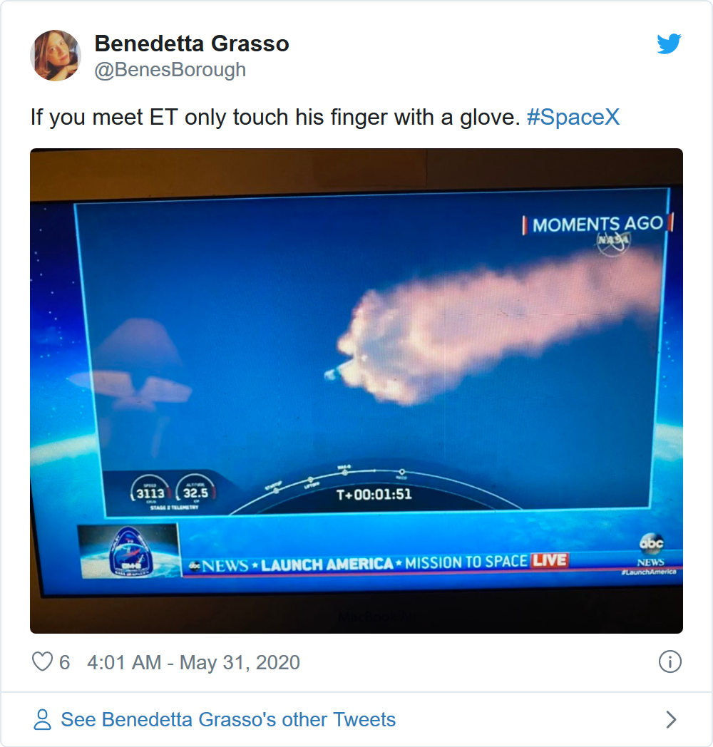 不过,也有人说,这次发射让他们获得了火箭动力,一位Twitter用户写道:“我10岁的时候曾想成为一名宇航员,今天他也有自己激动和快乐的时刻,他不停地尖叫着:‘加油加油加油!’”