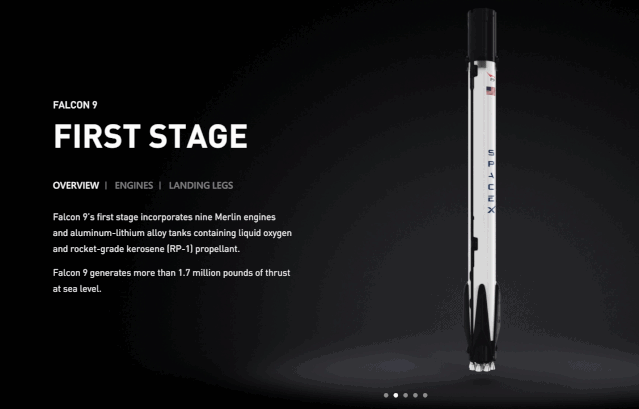 推进装置( 也就是火箭 ),采用的是 FALCON 9 ( 猎鹰九号 )两级式助推火箭,同时它也是世界上第一个可重复使用的轨道式火箭。