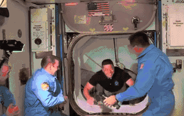 【两名宇航员进入国际空间站,与三位已在国际空间站的宇航员正式见面】