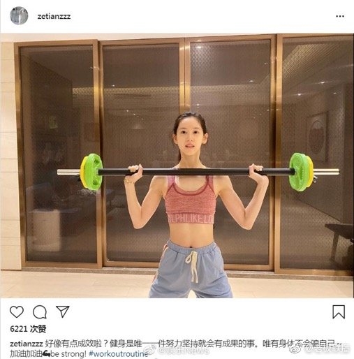 5月31日,章泽天在国外社交平台上分享了自己的健身照称:“好像有点成效了?健身是唯一一件努力坚持就会有成果的事。唯有身体不会骗自己~加油加油,be strong!”照片中,章泽天双手举杠铃,身形干练,精气神十足,看起来应该坚持健身了一段时间。
