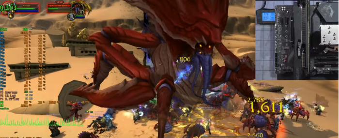 试验的结果出乎意料,酷睿i7-10700K在50W TDP、无风扇的情况下还真撑住了,游戏性能也没太大影响,魔兽世界中频率还可以达到4.7GHz,温度在80°C出头,整体帧数可达120-140fps。