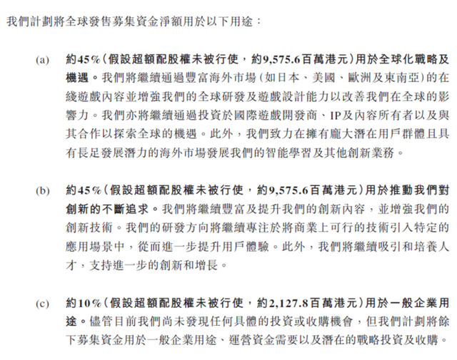 2、募资用途:集中用于全球化战略及机遇、丰富提升创新内容和技术