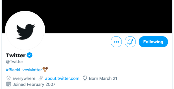 比如说,Twitter 公司把自己在平台上的 logo 设定为黑色,还在其官方账号的介绍页面表示: