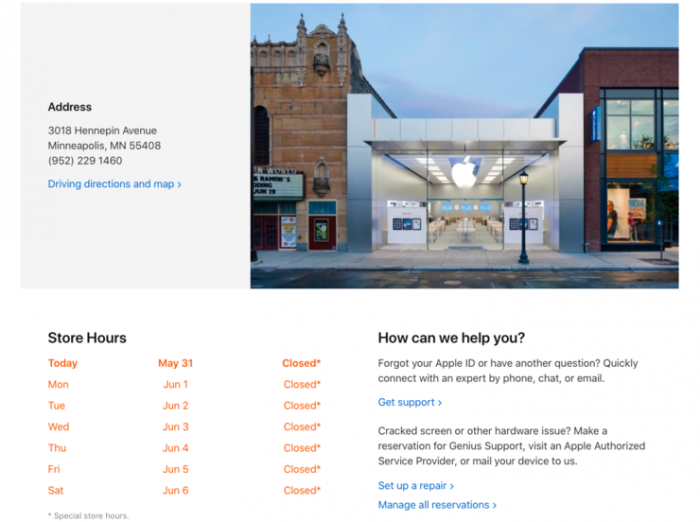 在苹果官网,这家店从 5 月 31 日起宣布关闭,目前关闭的时间已经延长到 6 月 6 日。