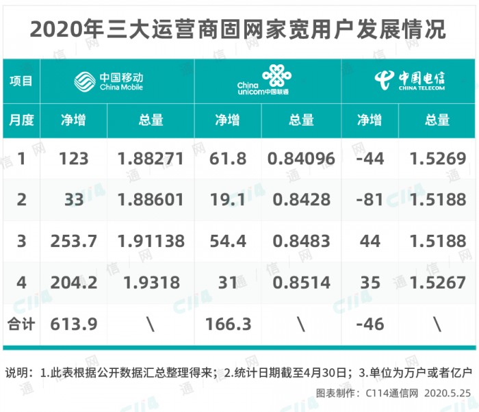 今年前4个月的经营数据已经显示,中国移动的固网家宽净增速度仍然保持了相当的高速,而且其全年发展1200万户的净增目标有望于3季度末完成。另外,按照当前的发展速度,中国移动全年的发展目前极有可能达到1800万户。