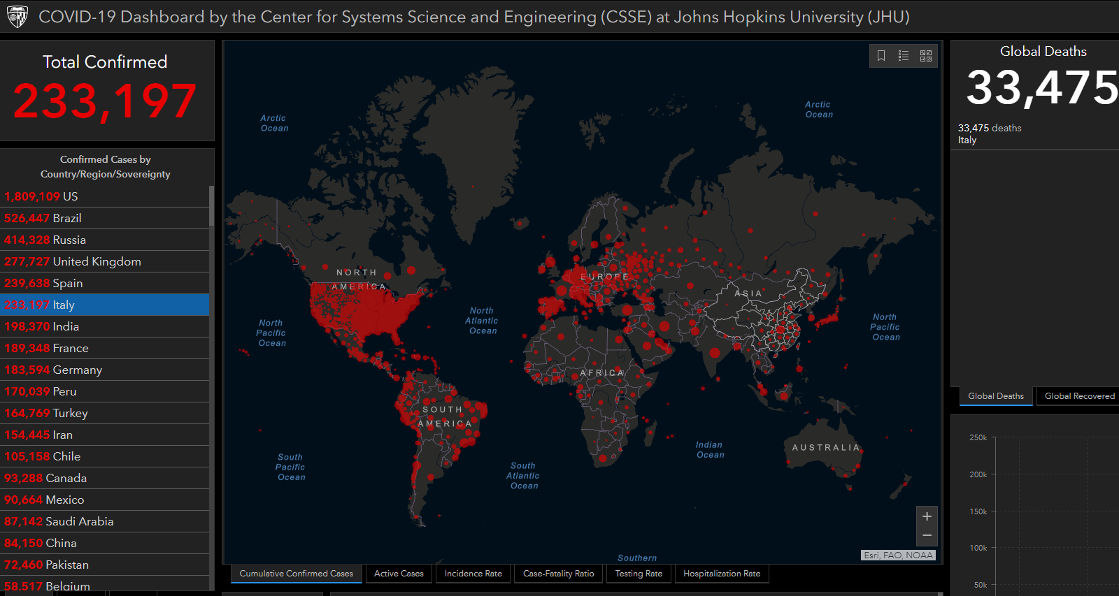 意大利已出现233197例COVID-19确诊病例,33475人因该疾病死亡。