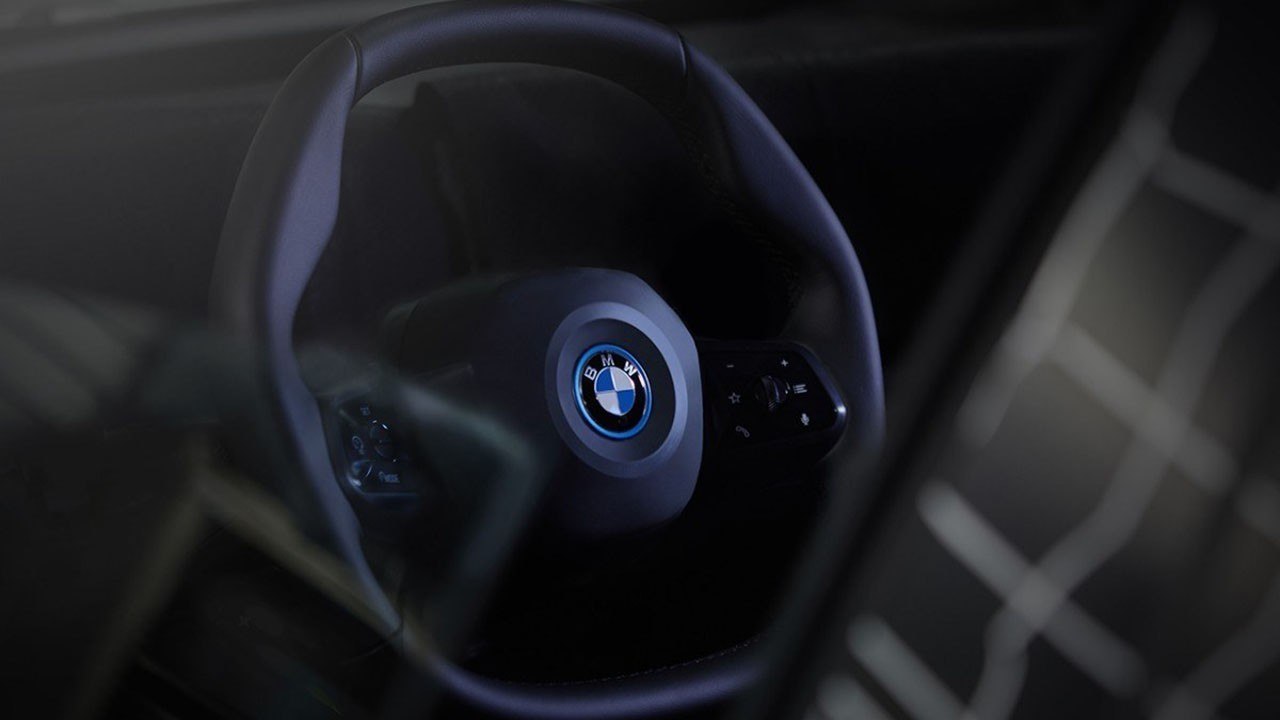 外观方面,新车采用了最新的家族式设计,前脸部分运用了硕大的双肾式前格栅,格栅周围还有蓝色元素,彰显其纯电动车型身份。车头两侧的前大灯造型较为细长,其日间行车灯采用的是勺子式的设计。此外,新车的轮圈造型十分炫酷。
