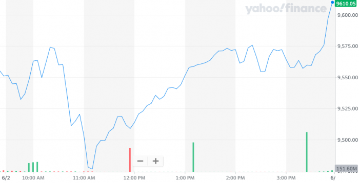 北京时间6月3日消息,星期二美股收高,纳指接近历史高位。截至收盘,道指涨267.63点,涨幅为1.05%,报收25742.65点;标普500指数涨25.09点,涨幅为0.82%,报收3080.82点;纳指涨56.33点,涨幅为0.59%,报收9608.38点。