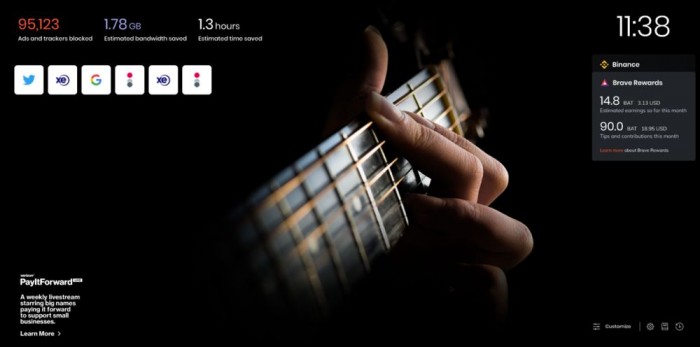 最近的广告活动中品牌包括Verizon, Newegg, Chipotle, and PayPal/Honey, in addition to earlier campaigns by Amazon, Harry’s Razors, Intel, CBS, KIND snacks, Logitech, Lenovo, Grubhub, Belkin, Quickbooks和Evernote。目前,Brave Ads活动已在183个国家和地区得到支持。