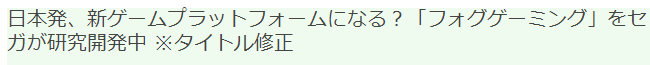 上周日本知名记者西川善司爆料,称Fami通本周将有一个全球独家爆料,而且内容将在游戏业界引起一阵旋风,目前杂志速报已曝光了相关内容——称世嘉正开发新形态游戏领域《雾游戏》,具体主要对应正日渐没落的街机业,听起来和家用娱乐界的“云游戏”有点联系,不过究竟如何,一起来了解下。
