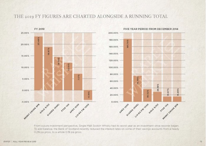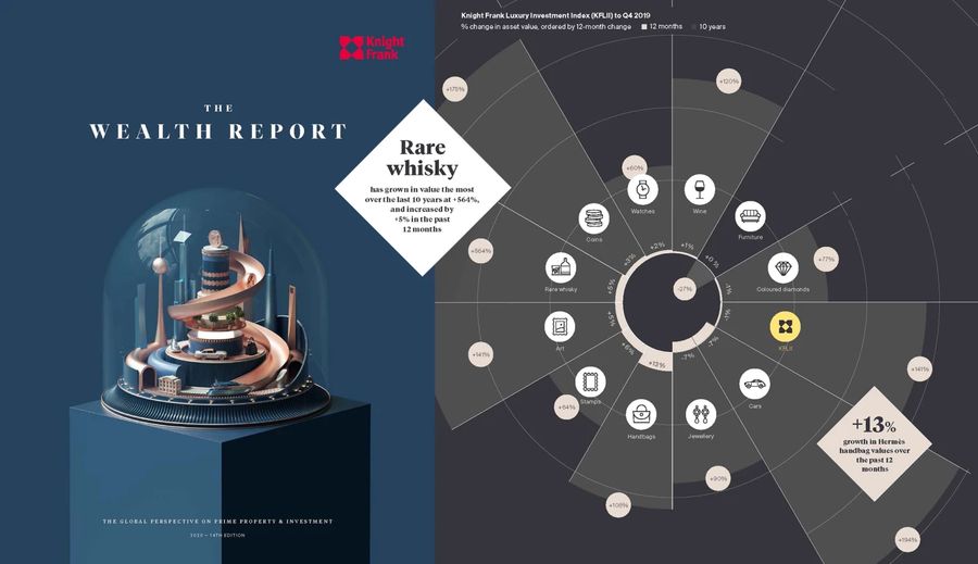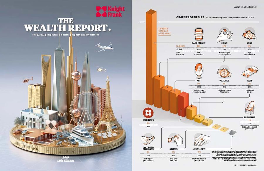 莱坊(Knight Frank)每年出版的财富报告是最优秀、最有用的出版物之一。在《2019年财富报告》中将稀有威士忌作为另类资产类别的重要推荐产品。而在5月28日苏富比拍卖会上,威士忌价格的抗跌性更是成为一个热门话题。