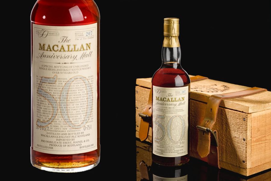 The Macallan 50 Year Old 1928 Anniversary Malt 是 The Macallan 销售的首个限量威士忌,在 1986 年 6 月 17 日创下了 1265 英镑(约合 1900 美元)的价格创下了历史记录。