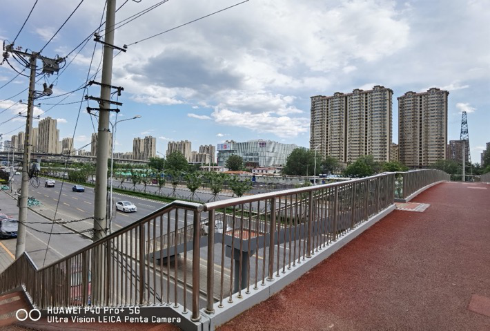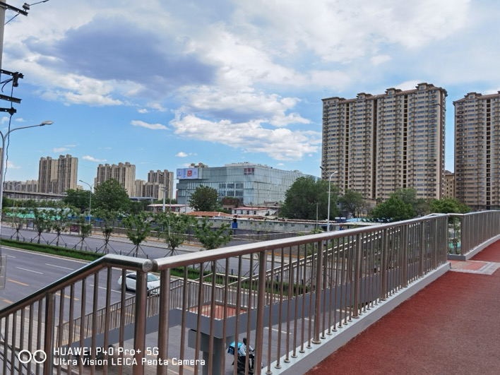 上面是我们在过街天桥上使用华为P40 Pro+拍摄的广角照片,仔细找找对面远处的“芳圆里”,后面的变焦照片我们将以这个坐标作为参照物。