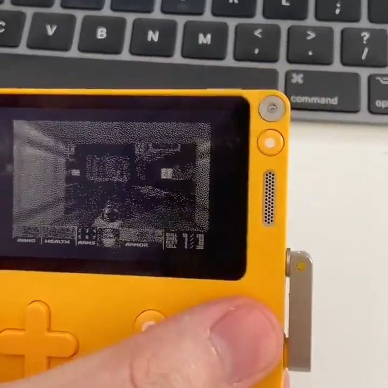 国外开发者将初代《毁灭战士》移植黑白掌机Playdate,整体表现虽然不错,但开火方式略显喜感。Playdate是一款有发行过《无题大鹅模拟》和《看火人》的开发商Panic推出的一款掌机,一个开发商做这个黑白像素屏主机颇有点“不务正业”的感觉,并且该掌机除了十字键和A/B键,还有一个独特的右侧旋转式摇杆。