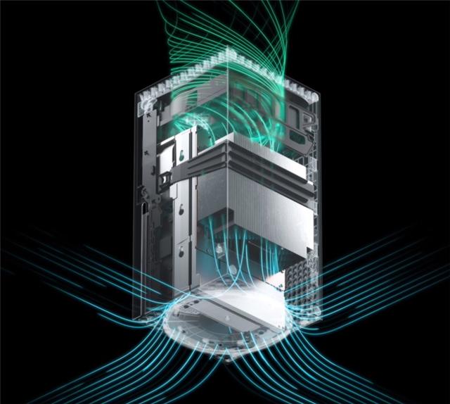 三个气流通道均匀分散内部组件产生的热量,让主机保持凉爽和无声。
