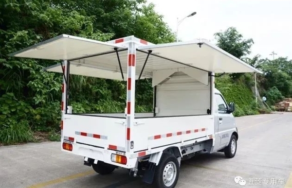 据官方介绍,五菱翼开启售货车,基于五菱荣光单排小卡打造而来,提供1.5L和1.8L两款车型,其货箱尺寸分别为5.39立方米和7.13立方米。