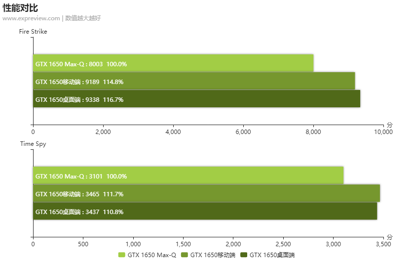 那么在其他规格方面移动端相对桌面没有升级的情况下,移动端的性能自然不如桌面端。不过还真有笔记本上的GTX 1650与桌面端的性能一样的,比如我们之前测过的惠普暗影精灵5这款笔记本上搭载的GTX 1650,它虽然频率不如桌面端GTX 1650,但是英伟达给了它比桌面端GTX 1650还多的流处理器,于是它与桌面端GTX 1650性能几乎差不多。