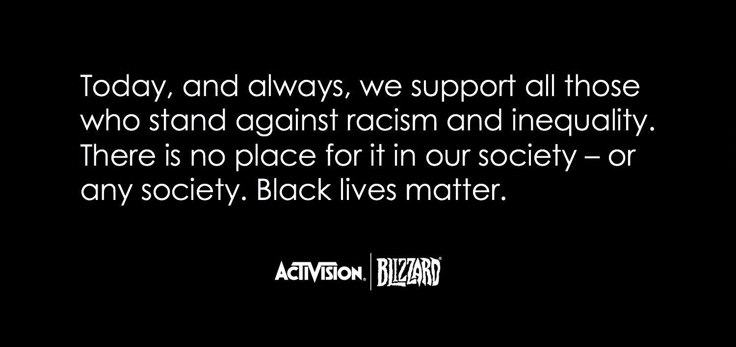 动视暴雪6月1日发表的声明,支持反对种族歧视和不平等的所有人,种族歧视不应在任何社会中留有生存空间。