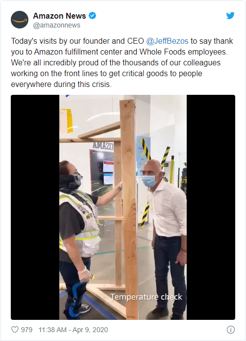 该公司CEO杰夫·贝索斯(Jeff Bezos)上周表示,亚马逊并未因为担心批评而解雇员工,但这些批评不能成为与疫情无关的违规行为的借口。