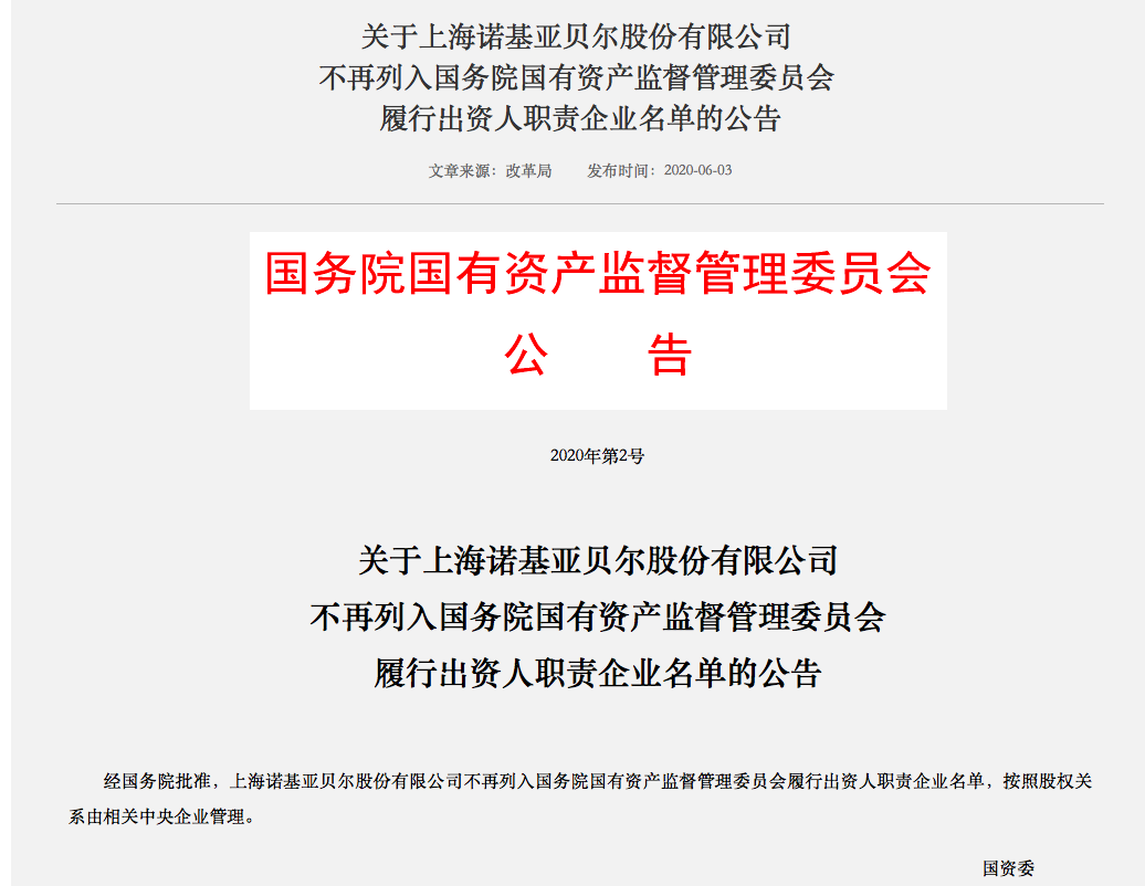 国资委:上海诺基亚贝尔不再列入监督管理委员会履行出资人职责企业名单