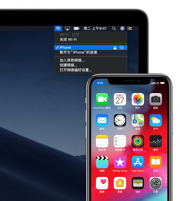借助智能热点,iPhone 或 iPad(Wi-Fi + 蜂窝网络)上的个人热点可以为 Mac、iPhone、iPad 或 iPod touch 提供互联网连接,而且无需输入密码。