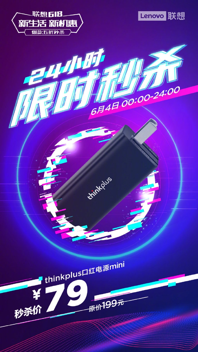 去年11月,联想推出了口红电源mini,采用45W功率,可折叠插头设计,售价199元,首发价99元.今天,这款口红电源迎来历史低价:仅79元,还不到原价的4折。联想口红电源mini三围尺寸30x30x68mm,容积为61cc,重量为88g,电源采用了VO级防火材质,ABS+PC外壳,可拆卸线材是TPE材质,自带魔术贴收纳袋,不易缠绕。