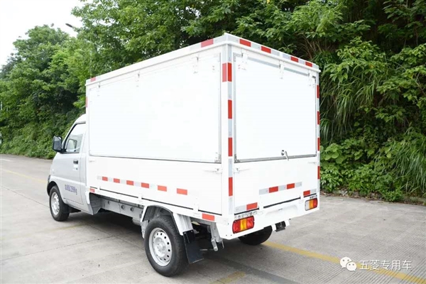 其厢体采用PP蜂窝复合材料,左/右侧门、尾门可向上开启85°,下边板安装有挂钩可平铺使用,承重力强,扩大货台面积。
