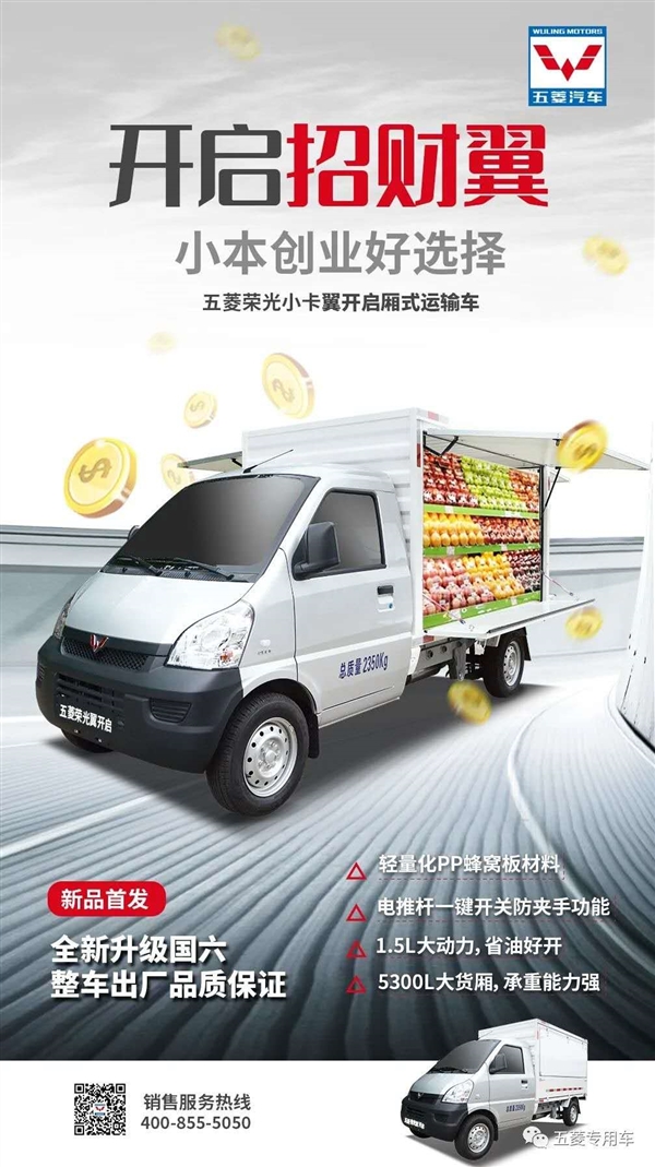 地摊经济火了,五菱汽车地摊车也火了。近日,五菱官方宣布,旗下五菱荣光小卡翼开启和五菱荣光新卡翼开启车型正式上市,两款车型售价分别为5.58和6.78万元,升级国六,号称“地摊经济的正规主力军”。相比普通版车型,新车最大的亮点在于货厢。两车货厢均提供了电动推杆搭配气弹簧,并拥有防夹功能。