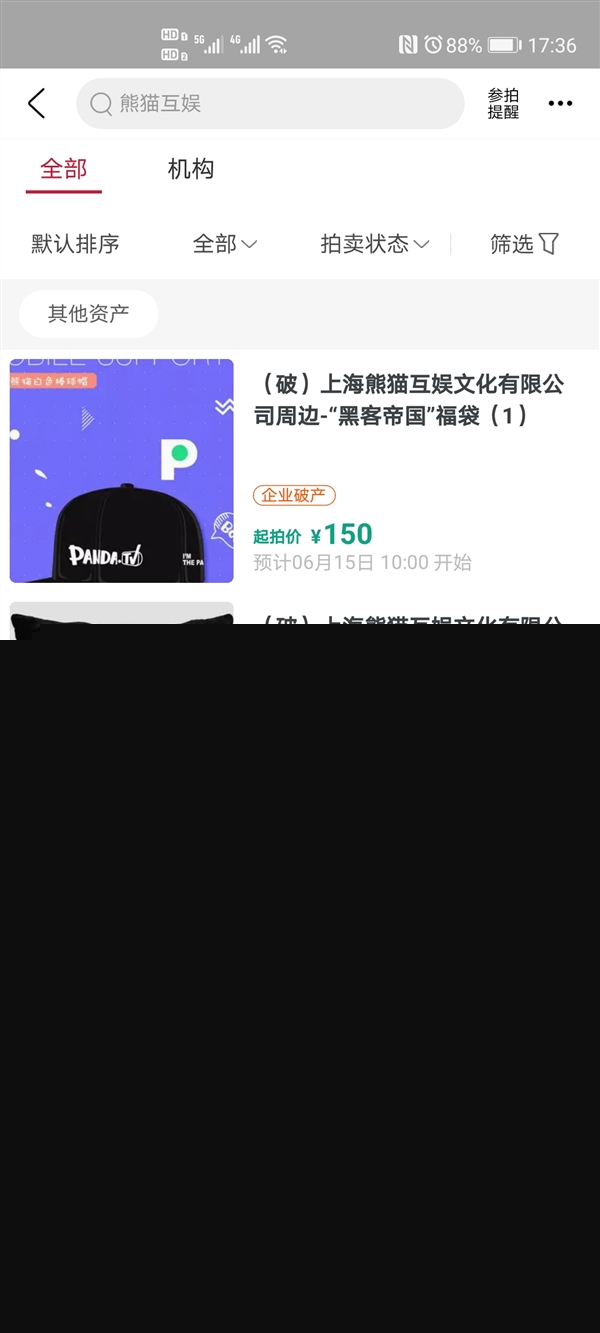 6月3日消息,上海熊猫互娱文化有限公司在阿里拍卖上线了一批周边、福袋等拍品,起拍价51元起。官方公告显示,经上海熊猫互娱文化有限公司第一次债权人会议通过,上海熊猫互娱文化有限公司管理人将于2020年6月15日10时至2020年6月16日10时止(延时除外)在淘宝网阿里拍卖破产强清平台进行公开拍卖活动。