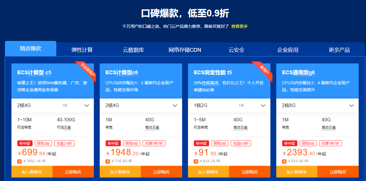 ②云产品优惠:云服务器低至0.9折,工商注册9.9元起,商标钜惠270元,域名新注0元起,云数据库1折起;