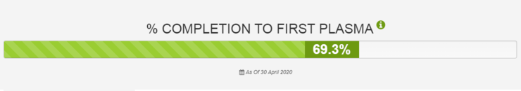 实际上,此次新冠疫情也影响了工程进度——施工现场的工作人员数从 2500 削减至 700。截止 2020 年 4 月 30 日,第一个等离子体完成进度为 69.3%。