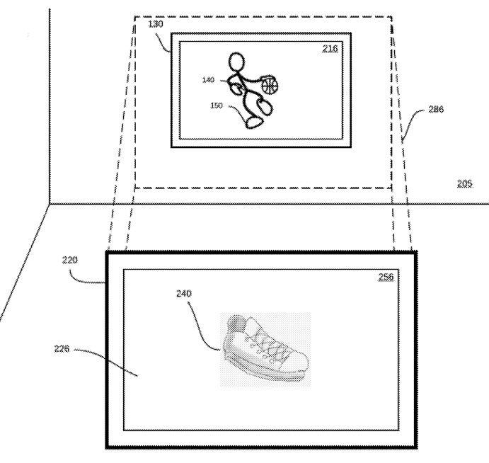 美国专利申请20200175275号名为"用于生成与物品相关联的方法、设备和系统"的苹果专利认为,当用户在电视上观看一场篮球比赛时,用户可能会对一个篮球运动员穿着的鞋子感兴趣,苹果的技术可以侦测到这种兴趣,并且在第二个屏幕上显示这款鞋子的详细信息。