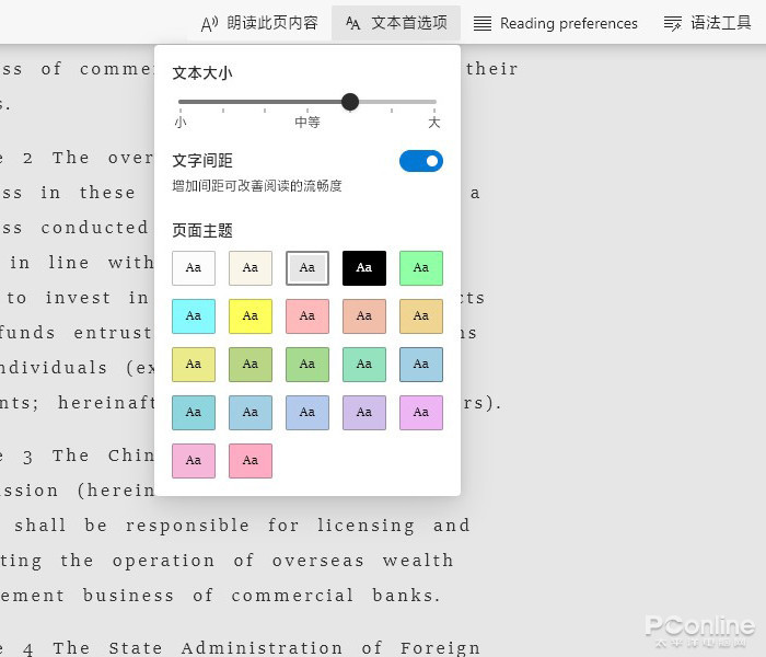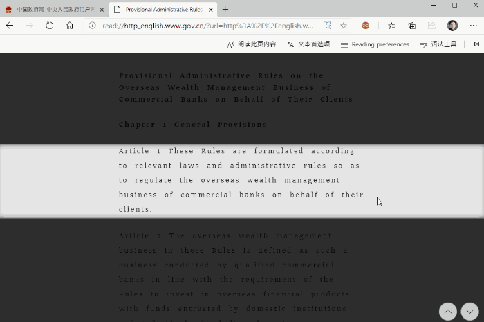 阅读模式一直是微软Edge的压箱底功能,当然也的确好用。随着Edge版本的日趋迭代,微软也在不断地向阅读模式添加各种新功能,比如文字大小调节、文字间距调节、页面底色修改。最令人惊奇的,是它的“行聚焦”功能。通过将其他浏览区域暗化,产生一种类似于“提词器”的神奇效果!不过阅读模式目前并不支持中文网页,后期将得到完善。