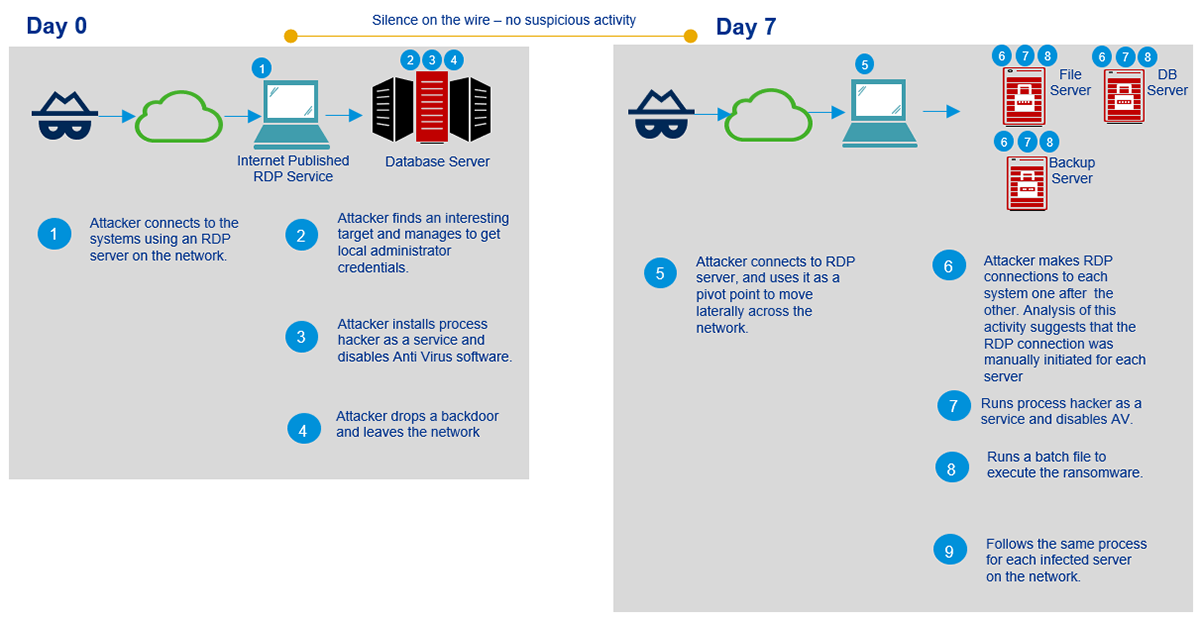 攻击者利用ProcessHacker工具禁用了组织的反恶意软件解决方案,并更改了活动目录服务器的密码。这使得受害者无法访问他们的系统。